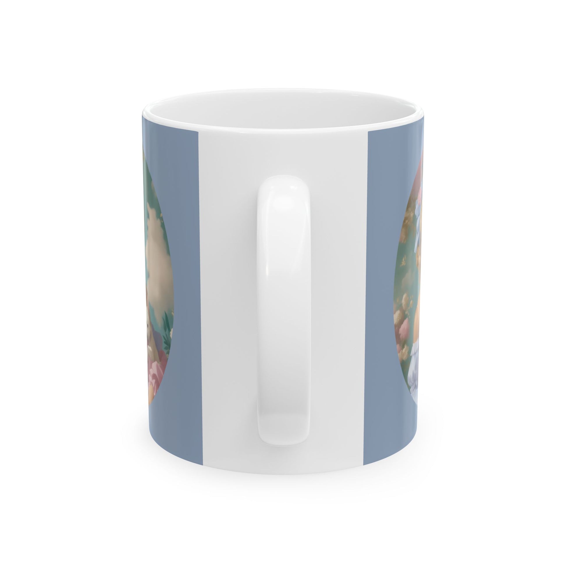 .: White ceramic .: 11 oz (0.33 l) .: Rounded corners .: C-handle .: Lead and BPA-free